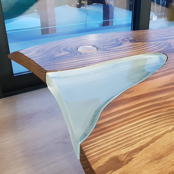 Taula fusta i vidre massís